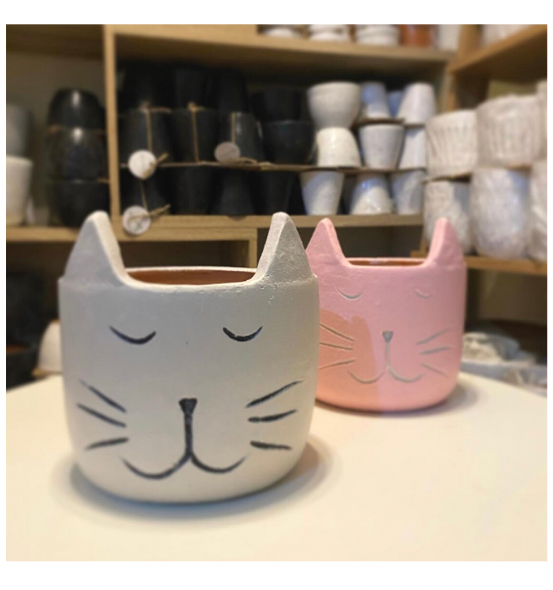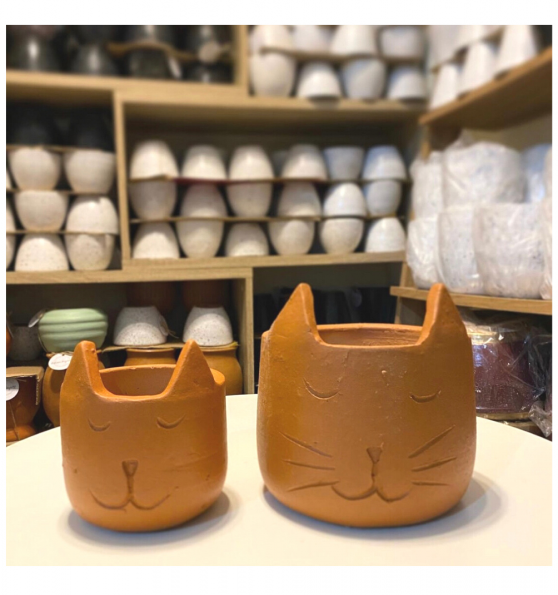Pot karakter binatang berbahan dasar tanah liat dengan bentuk motif kucing yang lucu. Dijual 1 set berisi 2 pcs pot kucing dengan 2 ukuran.